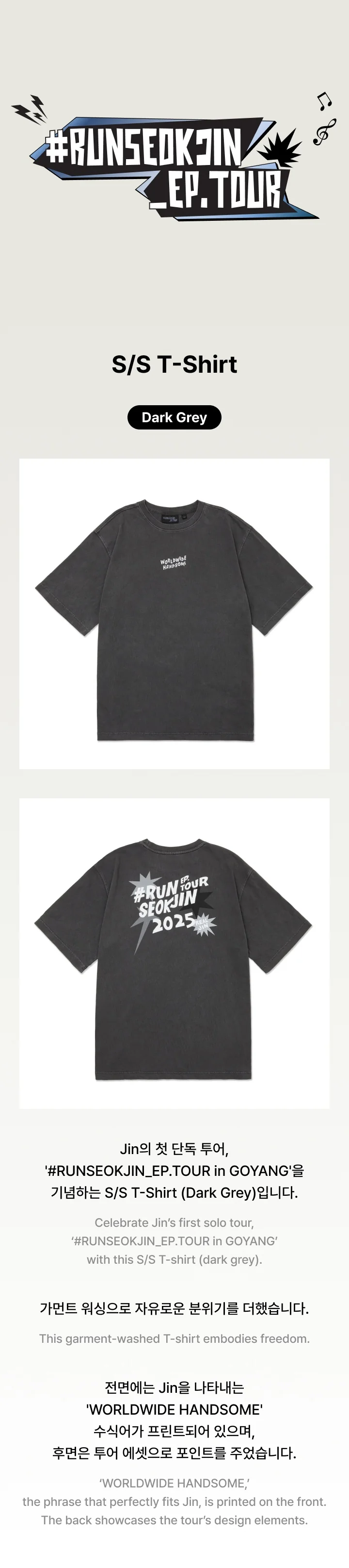 *PRE-ORDER* BTS JIN - [#RUNSEOKJIN_EP.TOUR] Short Sleeve T-Shirt (Dark Grey)